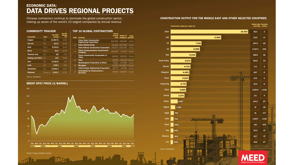 Includes: Commodity tracker | Top 10 global contractors | Brent spot price | Construction output