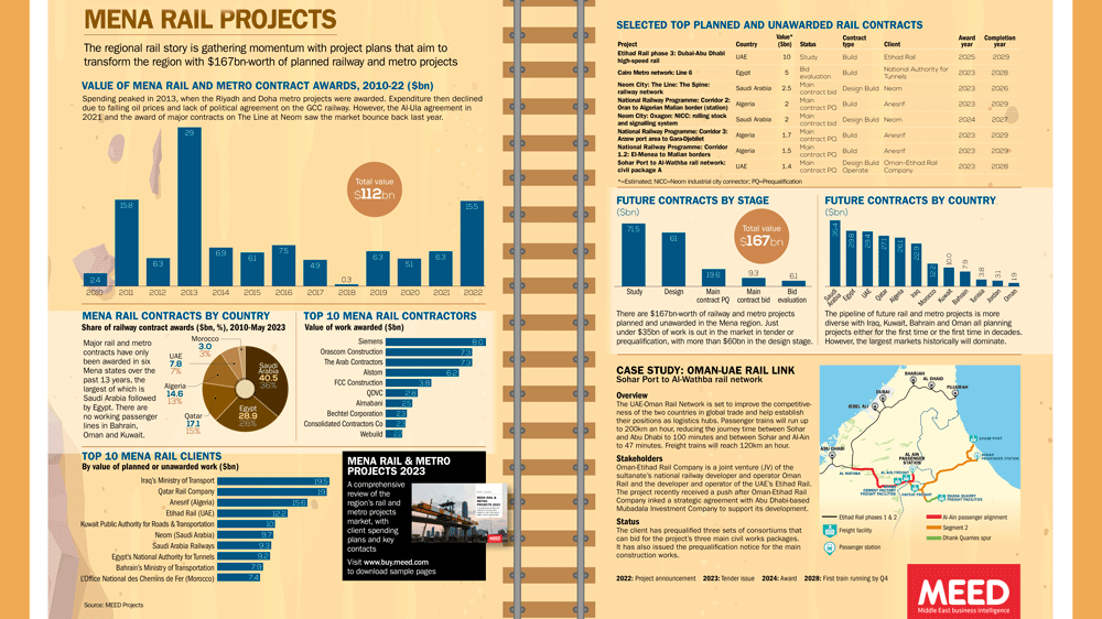> OVERVIEW: Major rail and metro contracts have only been awarded in six Mena states over the past 13 years, the largest of which is Saudi Arabia followed by Egypt.
